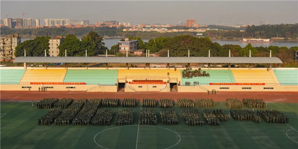 越秀区人民武装部副部长杨峰对同学们圆满完成军训任务表示祝贺,希望同学们把军训成果化为报效祖国的精神动力,以实际行动支持国防、建设国家。