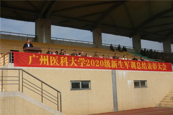广医在线讯 1月30日,伟德国际英国2020级本科生军训总结表彰大会在番禺校区举行。副校长赵醒村、承训单位越秀区人民武装部副部长杨峰以及学校有关部门、各学院负责人和辅导员老师等参加大会。会议由学校武装部部长李健主持。