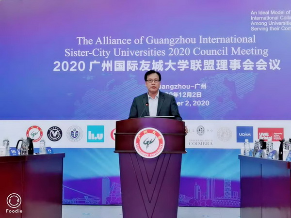 广医在线讯 12月2日,广州国际友城大学联盟2020年理事会会议在广州大学召开。此次会议以“携手应对后疫情时代的挑战,友城大学推进城市可持续发展”为主题,线上线下联动,来自联盟11所成员大学、新申请入盟大学、特邀观察员大学等国内外高校的代表通过视频会议聚首。