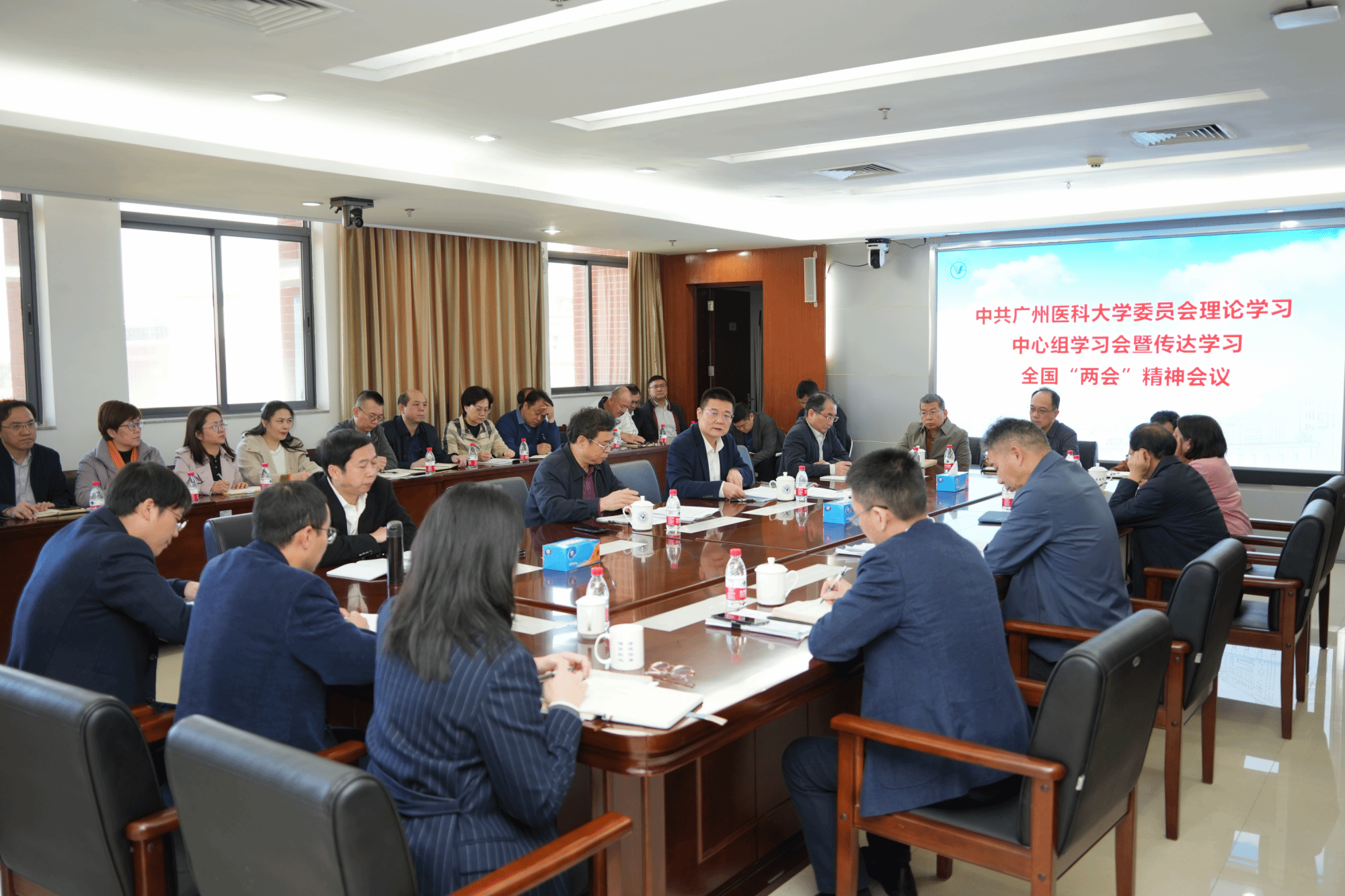 他表示,“新质生产力”“高质量发展”成为全国两会期间代表、委员们热议的关键词。高校是助力新质生产力加快形成的重要力量,我们要深入实施创新驱动发展战略,持续强化科技创新在学校改革发展中的引领作用,推动学校各项事业实现更高质量发展,切实担负广医在新质生产力发展中的政治责任和历史使命。要准确把握新修订的国务院组织法的精神实质和实践要求,全面加强学校自身建设,依法全面正确履行办学治校职能。