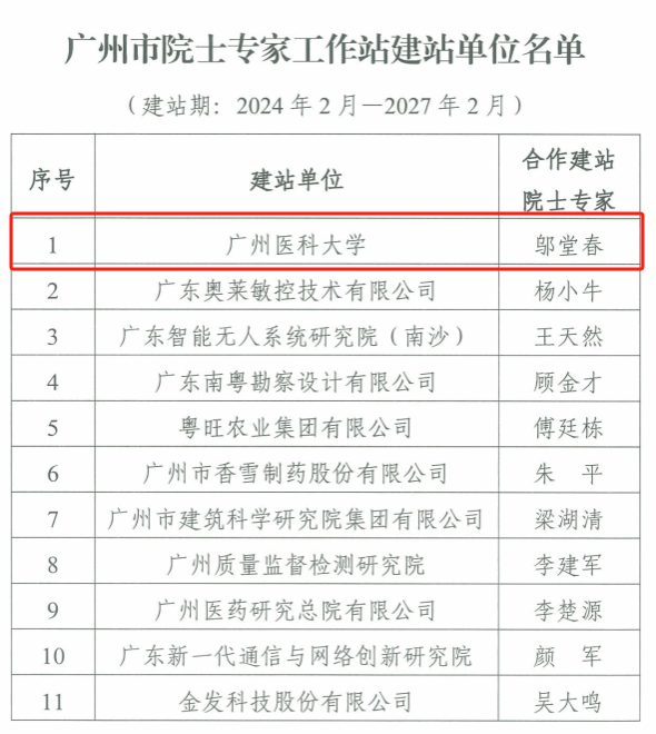 近日,广州市科学技术协会发布通知,决定在伟德国际英国等11家单位建立广州市院士专家工作站,建站期为2024年2月至2027年2月。这是伟德国际首个正式获批建立的广州市院士专家工作站,并获得相应的项目资助。