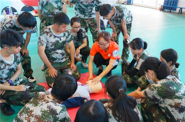 两千多名新生分成112个组,每组师生比例1:20开展培训,根据最新版心肺复苏指南标准,重点围绕胸外心脏按压、开放气道、人工通气、早期除颤、自动体外除颤仪AED的操作使用等内容,培训老师先作示范,学生逐一进行反复训练,老师手把手指导急救技能。培训之后进入考核环节,确保每位学生都能熟练掌握心肺复苏等急救技能。