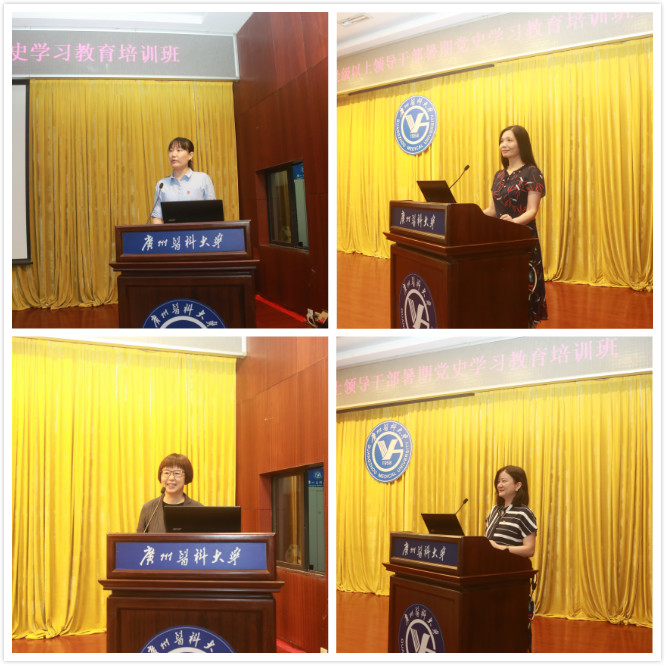 随后,学校机关第一党总支余少绚书记、教辅党总支尹梅书记、护理学院党总支雷丽琼书记、公共卫生学院党总支刘宇珊副书记作为学员代表进行了交流发言。