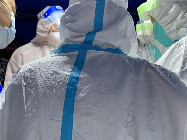 脱下防护服的他们,早已湿透了衣服