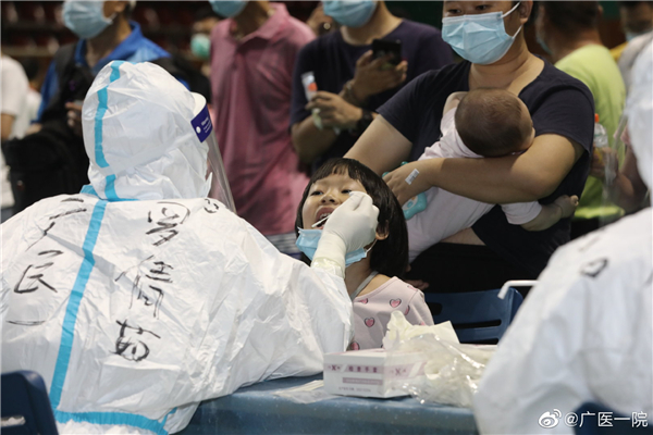 5月26日至6月1日12:00,已派出医护人员共46批次、超过600人次前往荔湾、海珠等地支援核酸检测,完成采样超过10万人次。