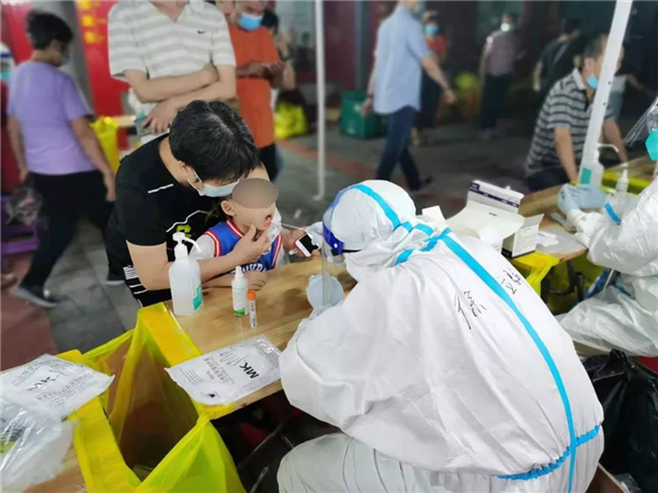 他们当中年龄最小的23岁,这些身穿防护服的“大孩子们”,专业操作毫不马虎,秒变“哄娃”高手:“遇到哭闹、害怕的孩子,我们必须要耐心、细心解释给他们听,让他们能够充分配合采样工作。”海印院区护士刘春香说,给孩子们采集核酸不能“硬来”,而要“智取”。