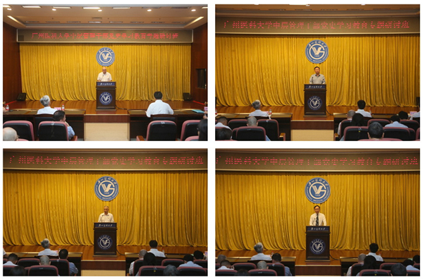 他指出,我们应准确把握新发展阶段的广医历史方位,自觉担负接续奋斗的历史使命;应准确把握新发展理念的丰富内涵,奋力推动学校高等医学教育和卫生健康事业再上新台阶;应准确把握新发展格局的路径选择,为打造新发展格局战略支点提供广医力量。全校中层管理干部要充分发挥“关键少数”作用,示范带动全校党员干部做到学史明理、学史增信、学史崇德、学史力行,做到学党史、悟思想、办实事、开新局。