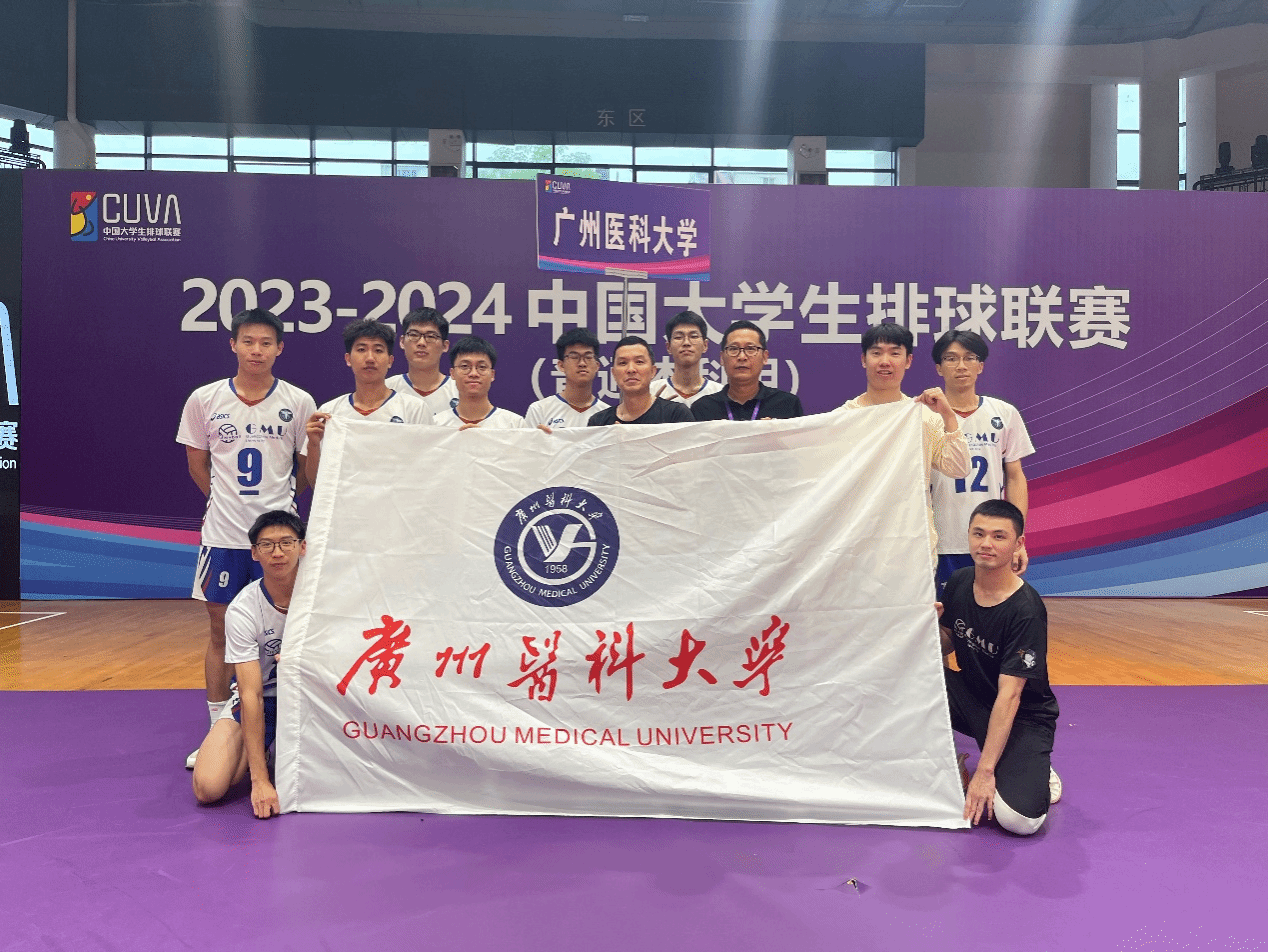 在教练蒋仲伟老师的带领下,广医男排士气高涨、团结一致、敢打敢拼。在小组赛中,广医男排以第二名的成绩进入八强,在八进四比赛中惜败于本次大赛冠军中山大学队。