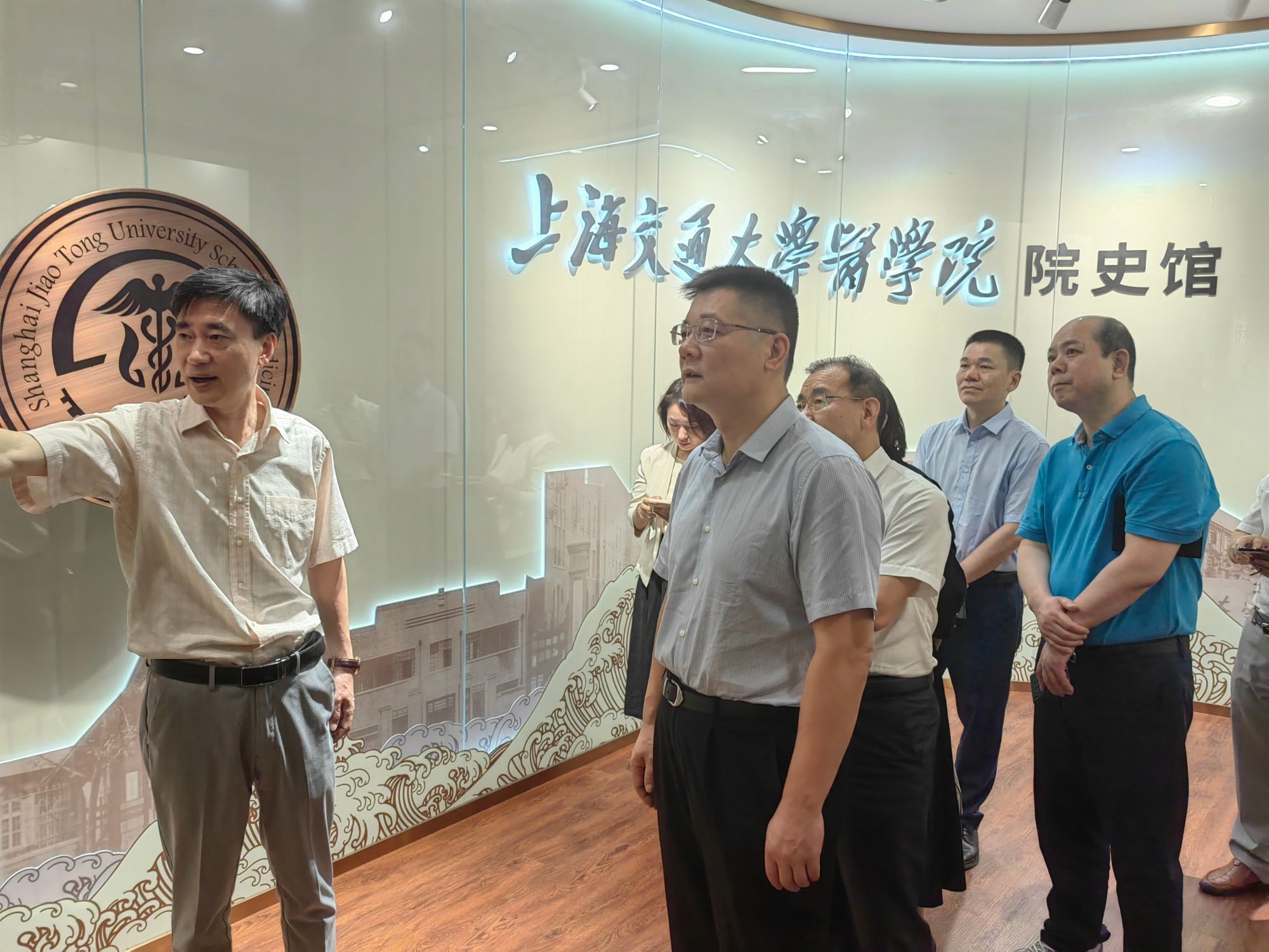 在上海交通大学医学院,赵醒村校长一行参观了院史馆,了解该学院120余年的发展历史和建设成效。在座谈交流会议中,双方介绍了各自的基本情况,并就校企融合、国际科研合作、学科建设、拔尖人才培养、学生管理等各方面问题进行了深入沟通交流。上海交通大学医学院党委副书记、副院长吴正一,原副院长胡翊群以及相关职能部门负责人参与座谈交流。