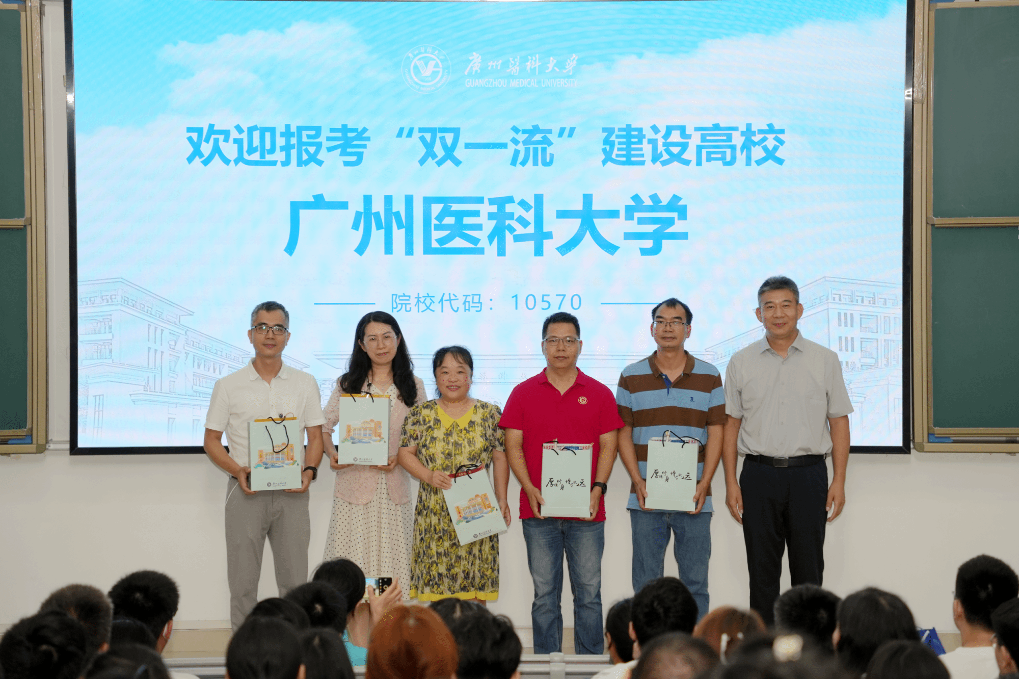 赠送给来访中学师生代表的广医文创产品