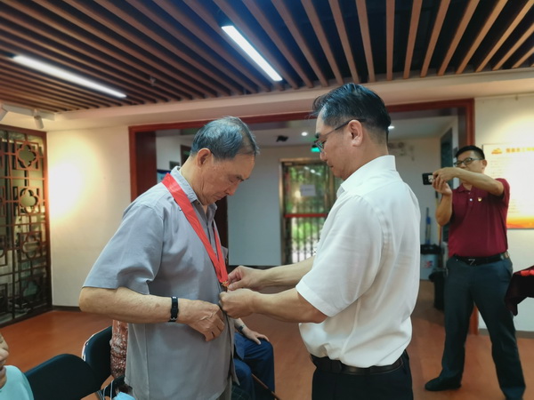 陈晓辉副书记首先为7名离休老党员逐一颁发并佩戴“光荣在党50年” 荣誉纪念章,向他们表示热烈祝贺,同时代表学校党委转达对老党员的关怀问候及美好祝福,对老党员所做出的贡献致以崇高敬意和衷心感谢。他说:“各位老党员半个世纪与党同行,是峥嵘岁月的亲历者、艰苦奋斗的参与者、繁荣昌盛的建设者,用实际行动铸就了忠诚一辈子、奉献一辈子的崇高精神,是我们年轻一代党员学习的榜样。希望各位老党员保重身体,继续为学校各项工作建言献策,以健康的体魄和良好的心态共续学校发展新辉煌!”