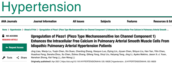 广医在线讯 4月5日,伟德国际附属第一医院、广州呼吸健康研究院、国家呼吸系统疾病临床医学研究中心、呼吸疾病国家重点实验室肺血管病学组在循环和外周血管领域权威期刊Hypertension(医学1区Top期刊,影响因子:7.713)在线发表了题为“Upregulation of Piezo1 Enhances the Intracellular Free Calcium in Pulmonary Arterial Smooth Muscle Cells from Idiopathic Pulmonary Arterial Hypertension Patients”的原创研究。