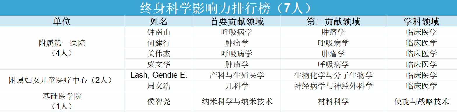 近日,美国斯坦福大学(Stanford University)与爱思唯尔(Elsevier)数据库发布了第七版《全球前2%顶尖科学家榜单2024》。伟德国际英国7位学者入围“终身科学影响力榜单”(表1),31位学者入围“年度科学影响力榜单”(表2)。其中,在呼吸医学领域,广医以11人次位居国内机构上榜人次首位。