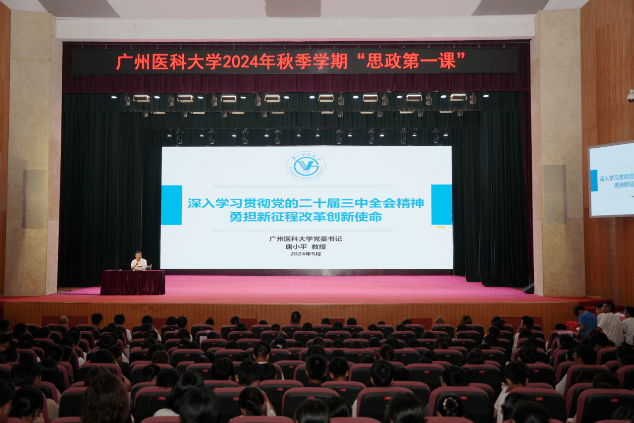 在题为“深入学习贯彻党的二十届三中全会精神 勇担新征程改革创新使命”的思政课上,学校党委书记唐小平教授为同学们介绍了党的二十届三中全会审议通过的《中共中央关于进一步全面深化改革、推进中国式现代化的决定》,详细阐述了落实科技人才战略的广医历史实践,分享了新征程中广医的改革创新之路,并号召广医青年勇担使命,为推进健康中国建设和中国式现代化建设贡献青春力量。