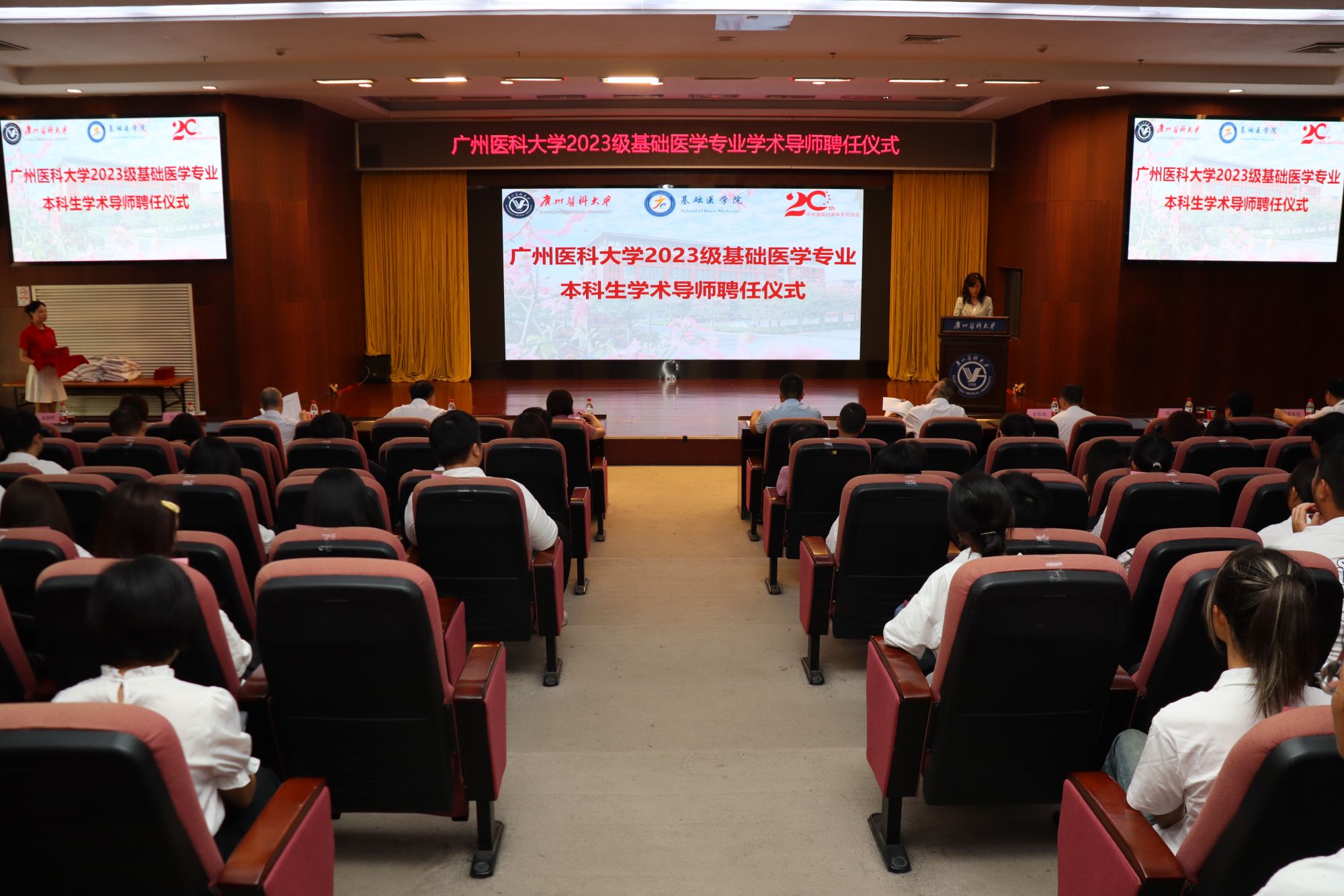 随后,基础医学院曲丽辉副院长宣读2023、2024级本科生导师聘任文件,聘任赵金存等23人为2023级基础医学专业学术导师,刘金保等30人为2024级基础医学专业学业导师。