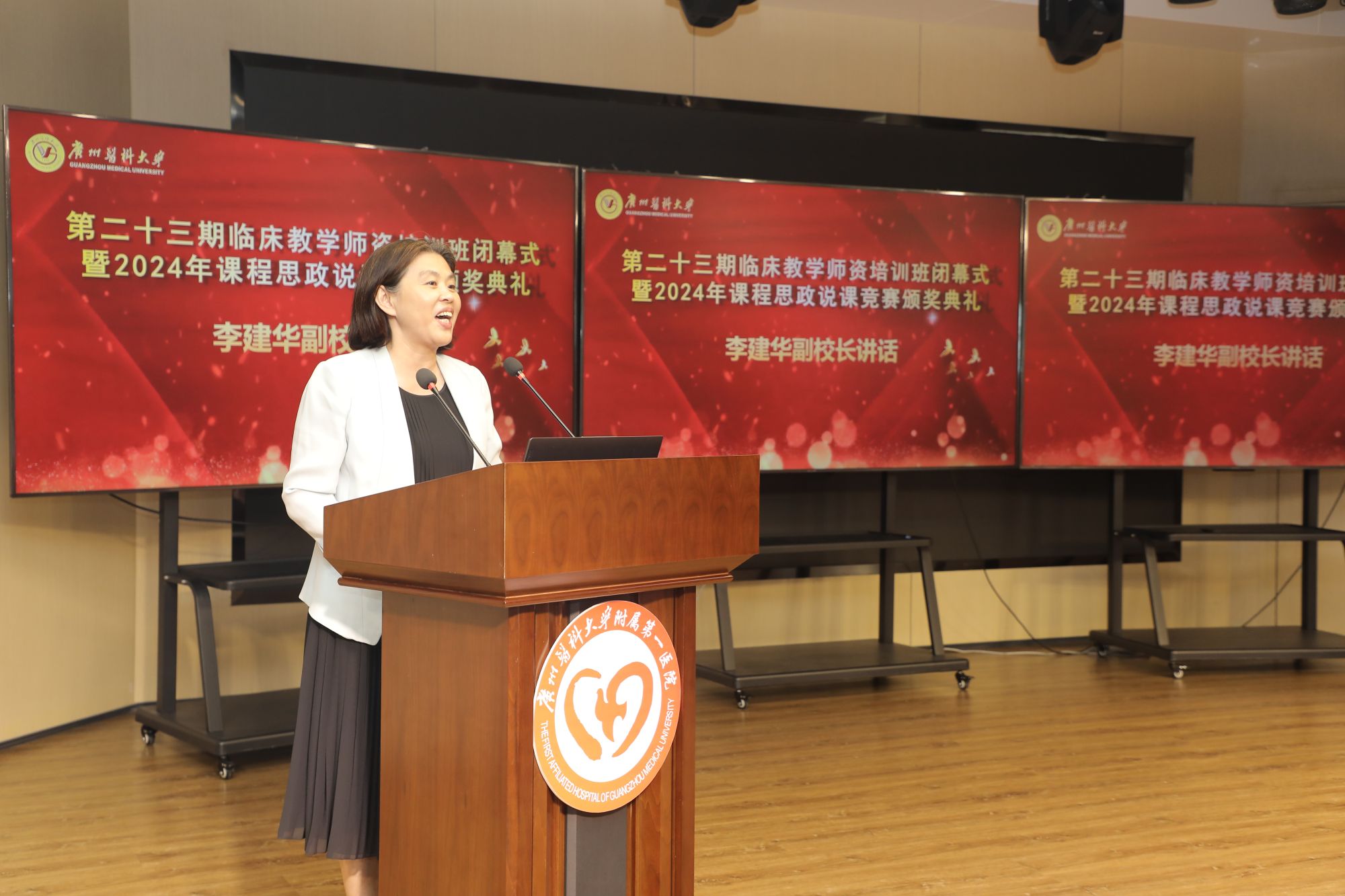 竞赛结束后,学校2024年课程思政说课竞赛闭幕式暨颁奖典礼举行。副校长李建华、全体评审专家、第一临床学院副院长周承志、教师教学发展与研究中心副主任许松青以及教学管理部门负责人参加颁奖典礼,颁奖典礼由学校教师教学发展与研究中心副主任林爱华主持。