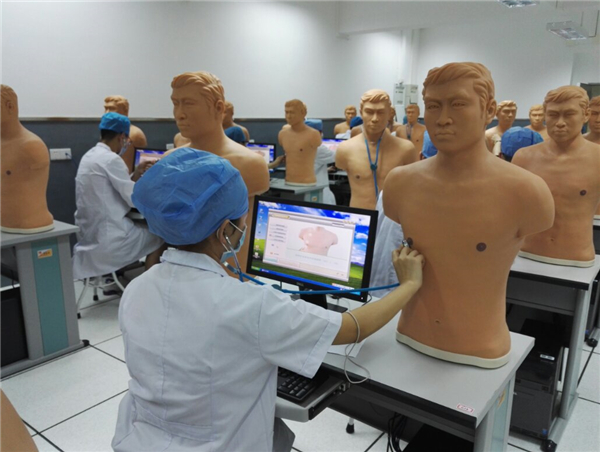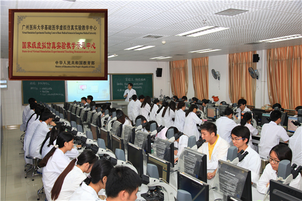 广医学生在国家虚拟仿真实验教学示范中心上课。