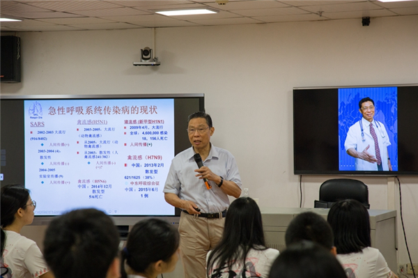 钟南山院士为本科生上课。