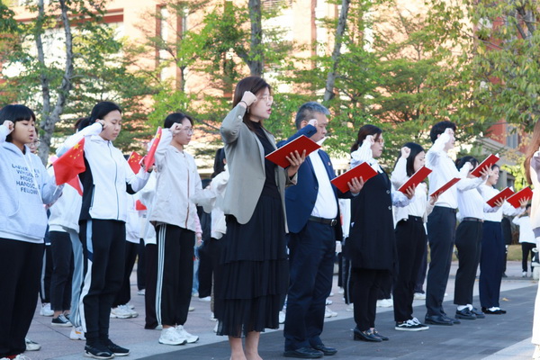 11月29日上午,第一临床学院、南山学院在番禺校区国旗广场举行升旗仪式和宪法晨读、宪法宣誓活动。附属第一医院党委副书记刘君出席活动并发表题为《百年征途路漫漫,星火熠熠永相承》的国旗下讲话。