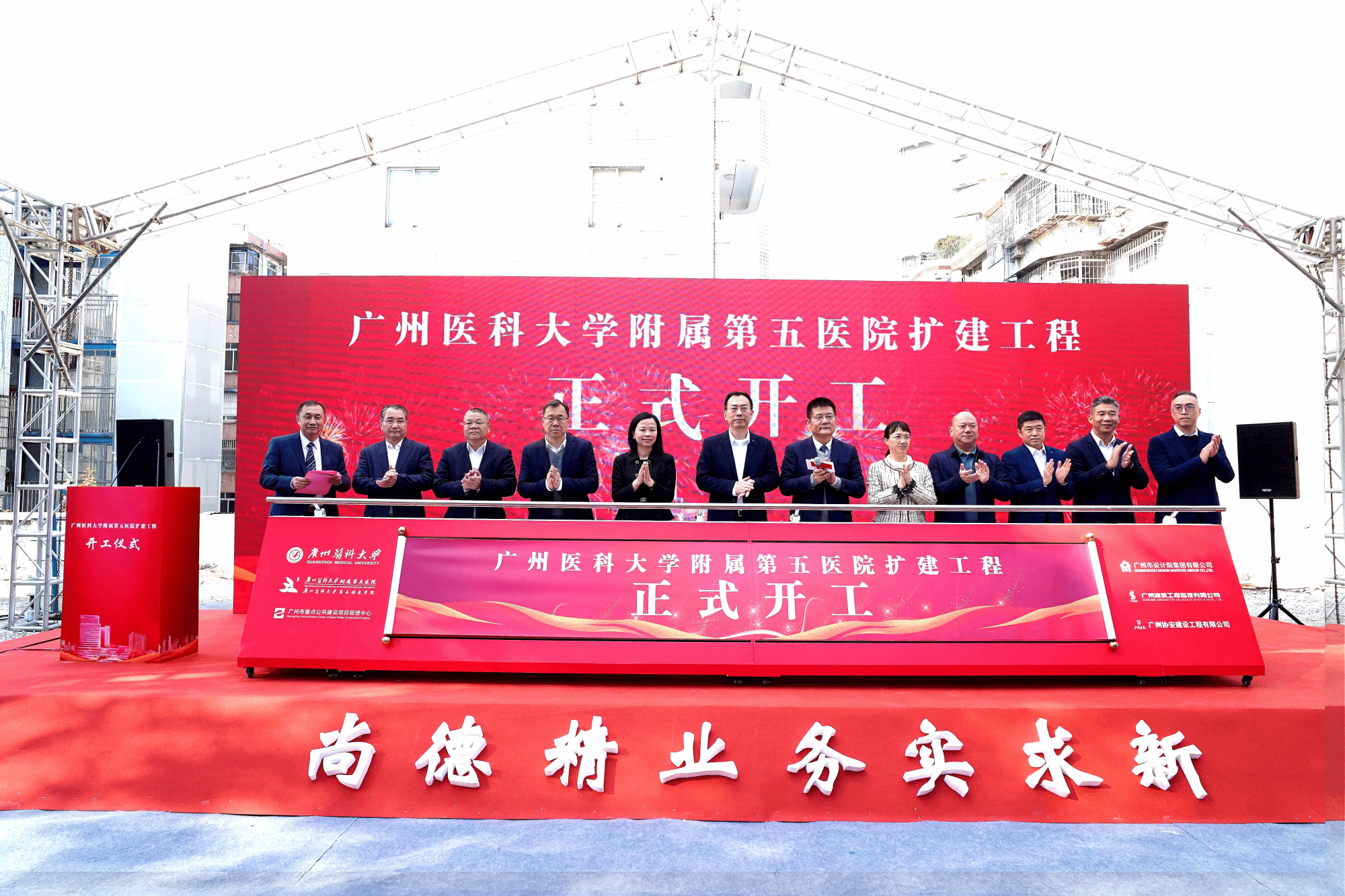 黄埔区委副书记邓奕中在致辞中表示,广医五院扩建工程开工是对广州开发区建区40周年的献礼。广医五院扎根黄埔区67年,是黄埔区百姓身边的“医靠”。在突发公共卫生事件中,医院为守护黄埔区人民生命健康构筑起坚固防线。在黄埔区大型活动中,医院提供全方位的医疗保障服务,有力提升了黄埔区在大型活动承办方面的综合保障能力。