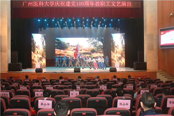 广医在线讯 百年征程波澜壮阔,百年初心历久弥坚。12月23日,由学校党委主办、学校工会承办的广医系统“奋斗百年路·永远跟党走”庆祝建党100周年教职工文艺演出在番禺校区礼堂举行。演出以丰富多彩的艺术形式歌颂中国共产党团结带领中国人民不懈奋斗的光辉历程,抒发广医人爱党爱国的赤诚情怀和矢志奋斗的昂扬风貌。