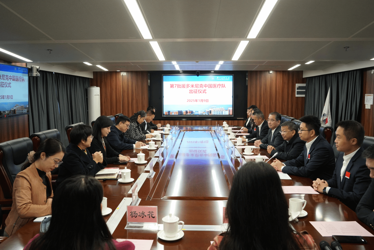 1月9日,第7批援多米尼克中国医疗队出征仪式在伟德国际英国越秀校区举行。省民营医院和卫生社团组织联合党委专职副书记邓林峰和省卫生健康委交流合作处、省卫生健康对外合作服务中心相关人员,学校党委副书记陈晓辉和医院管理处、对外合作交流处、附属第一医院、附属第二医院、附属第三医院相关负责人,援多米尼克中国医疗队队员等参加仪式。
