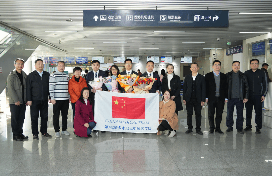 仪式上,队长邓楠代表第7批援多米尼克中国医疗队向关心支持他们的各级领导、同事们表示衷心感谢。他表示,回首出国前的培训时光,医疗队成员收获满满。即将前往多米尼克,全体队员深知责任重大、使命光荣。在接下来的日子里,医疗队将克服语言、文化、环境等诸多方面的困难,尽最大努力提供优质、高效的医疗服务,并积极与当地的医疗团队合作交流,搭建起中多两国医疗领域友好沟通的桥梁。医疗队将用实际行动诠释“不畏艰苦、甘于奉献、救死扶伤、大爱无疆”的中国医疗队精神,为增进中多两国的友谊、助力多米尼克的医疗卫生事业发展贡献力量。