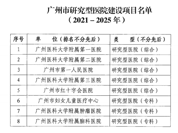 广医在线讯 为加快广州市医疗高地建设步伐,根据《广州市加快医疗高地建设工作方案(2020-2025年)》,广州市卫生健康委组织了广州市研究型医院评审工作,经过多轮材料和现场评审,广州市共有8家医院入选建设名单。伟德国际附属第一医院、附属第二医院、附属第三医院入选广州市研究型综合医院建设名单;附属肿瘤医院及附属脑科医院入选广州市研究型专科医院建设名单。