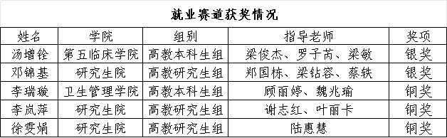 本次大赛以“筑梦青春志在四方、规划启航职引未来”为主题,分成长赛道、就业赛道两个赛道,其中成长赛道又分高教组、职教组两个组别,就业赛道分本科生组、研究生组和职教组三个组别。据悉,大赛自去年10月启动以来,全省共吸引了163所高校119.55万名学生报名参加。省复赛在各高校推荐的基础上采取两轮网评的方式,遴选出64所高校的154名选手晋级省决赛。伟德国际通过院赛、校复赛和校决赛共推荐10名选手参加省复赛,其中成长赛道的徐杰培、张含艺和就业赛道的汤增铨、邓锦基顺利晋级省决赛,并获得银奖。此外,成长赛道的南山学院何涓荣获铜奖;就业赛道的卫生管理学院李瑞璇和研究生院李岚萍、徐雯娟荣获铜奖。