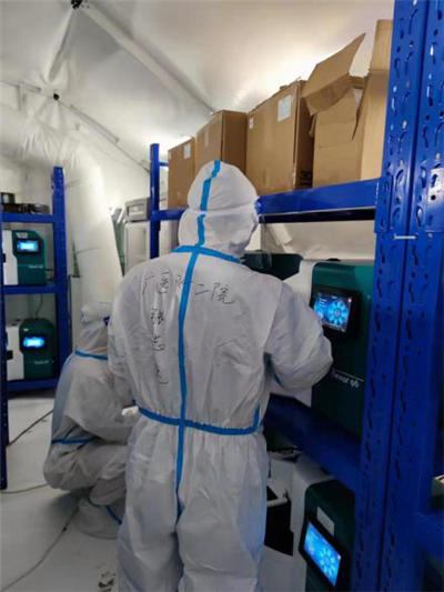 附三院派出了检验科的主管技师王征、检验师文慧虹支援上海。“刚开始真的不太适应,有的时候一天上两个班,高强度工作后还面临失眠,安眠药成了队员们的标配。”王征说道。