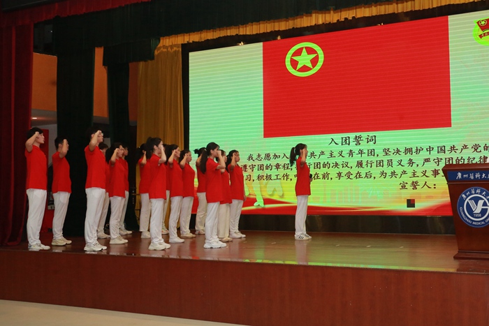 会上,精神卫生学院的吴姗姗同学带领团员青年代表重温入团誓词。