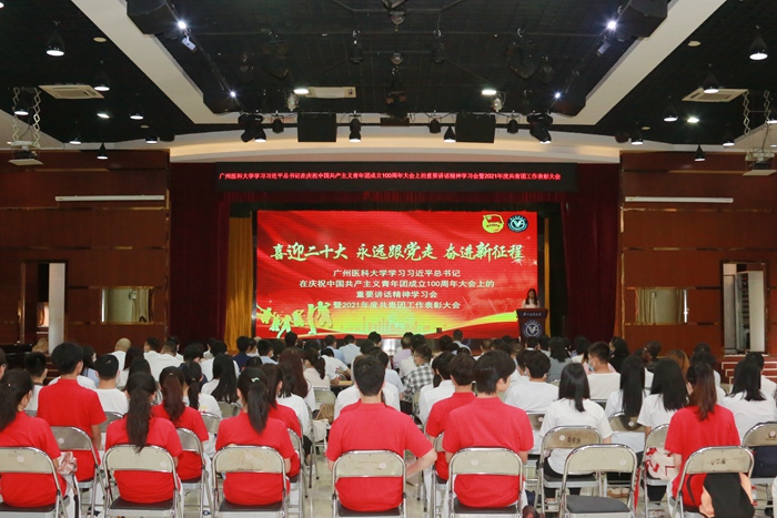 广医在线讯 百年青春心向党,奋楫扬帆启新程!5月18日,学校召开习近平总书记在庆祝中国共产主义青年团成立100周年大会上的重要讲话精神学习会暨2021年度共青团工作表彰大会。学校党委书记唐小平,副校长赵醒村、周麟出席会议,学校相关职能部门负责人,各学院、各附属医院、各基层团组织相关负责人以及团员青年代表参加了会议。会议由学校团委副书记吴欣遥主持。