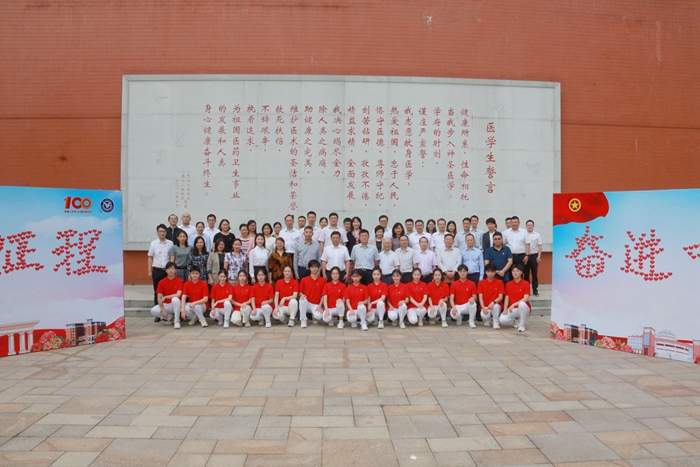 大会结束后,与会人员在心愿卡拼出的“百年征程、奋进有我”心愿墙旁合影留念 。一张张写满青春誓言的红色心形贴纸层层相叠,展示出广医青年永远跟党走的坚定信念和奋力跑出当代青年的最好成绩的坚定决心。
