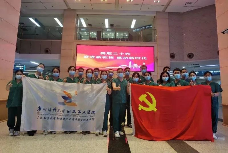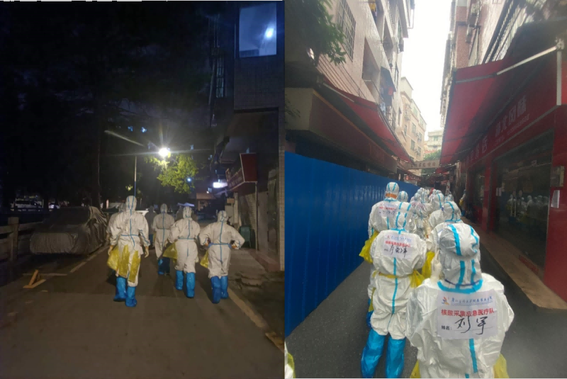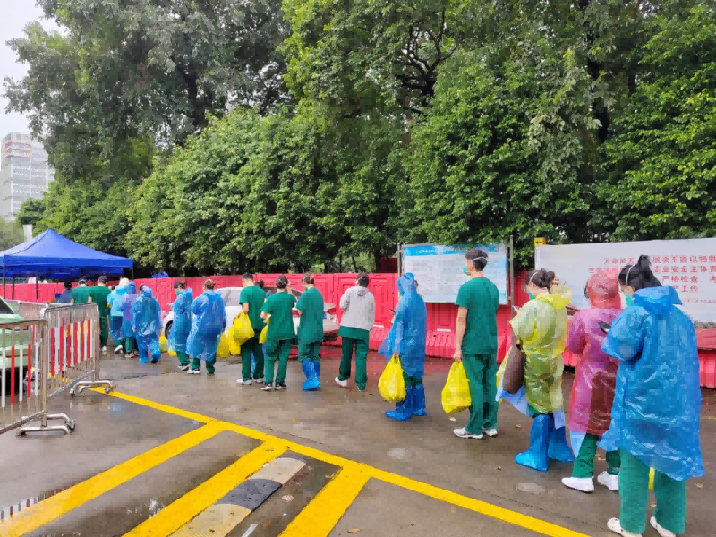 在此轮疫情中,附五院派出7批次共计100人支援花都、白云、海珠封控区,开展核酸检测,并为病患、志愿者提供健康服务。
