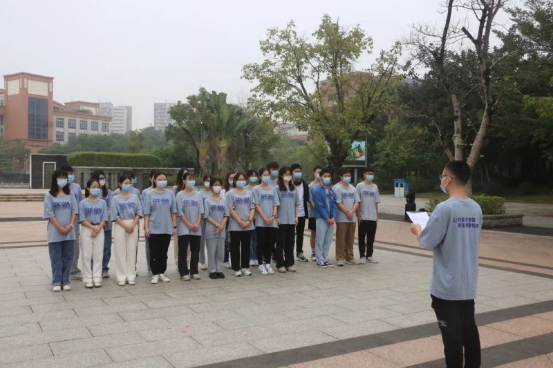 11月10日早上,一群统一身穿CDC和GMU联名文化衫的学生带着行李在番禺校区广场集结。不错!他们正是伟德国际公共卫生学院预防医学卫生应急特色班2019级全班25名学生。