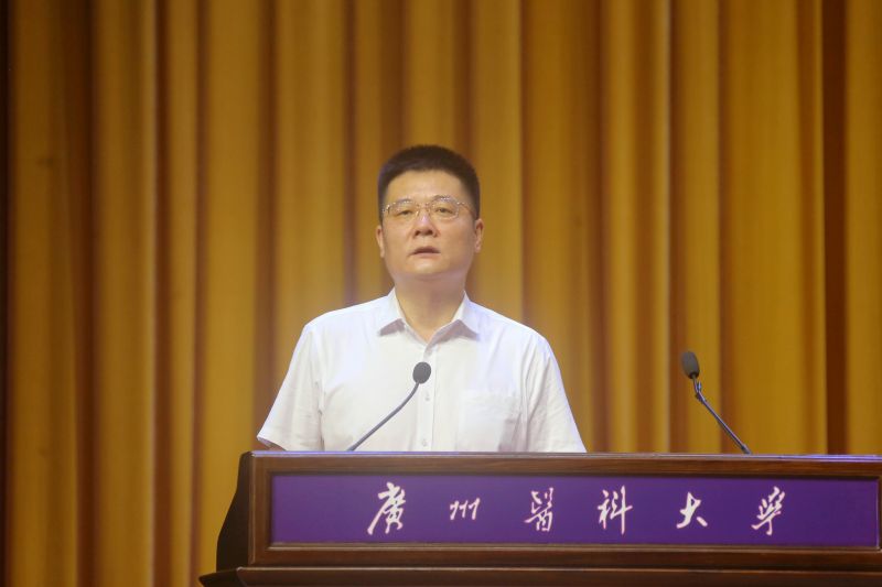 唐小平书记勉励新生树牢“为国求学”的大志向、练就“能担重任”的真本领、激活“创新引领”的高追求,在学业路上行稳致远、在成长路上追求卓越,将最好的青春、最美的奋斗,写进新时代“两个大局”的坐标,刻入“再造新广医”的征程。