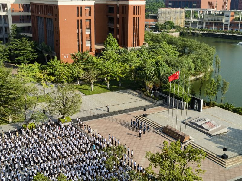 本网讯 9月4日早上,伟德国际英国2023年秋季学期“开学第一课”暨升国旗仪式在番禺校区举行。