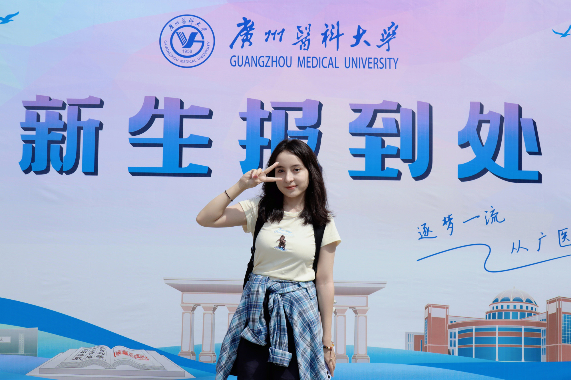 梁晓桐(临床医学专业):世界之小,我们竟有缘就读于同一个学校,希望你我能成为朋友,一起学习、共同进步,成为不负青春、不负时代的广医人!
