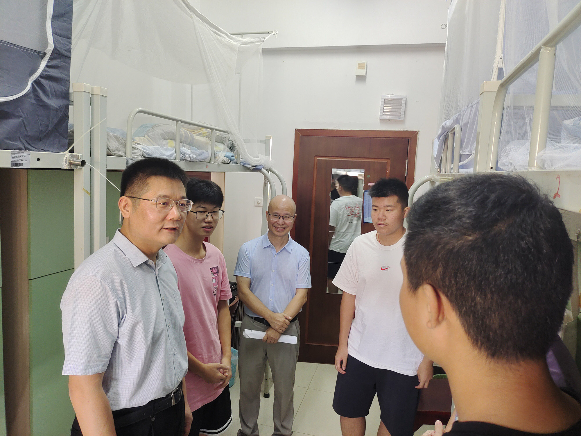 学校党委书记唐小平、校长赵醒村、副校长周麟以及相关部门负责人、辅导员老师到番禺校区宿舍看望慰问新生,并为今天生日的本科新生送上生日礼物与祝福,与他们畅谈青春梦想,展望大学生活。