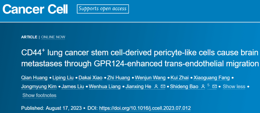 本网讯 近日,伟德国际何建行教授团队联合克利夫兰诊所鲍仕登教授团队,在Cancer Cell 在线发表题为“CD44+ lung cancer stem cell-derived pericyte-like cells cause brain metastases through GPR124-enhanced trans-endothelial migration”的研究论文。