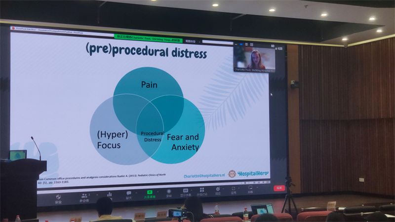 Charlotte Poot研究员做了题为《Design & implementation of hospital hero》的报告。她表示,基于手机 APP的干预能够有效降低儿童焦虑和压力,同时改善了儿童和医护人员之间的沟通,为数字健康干预的设计提供了依据。