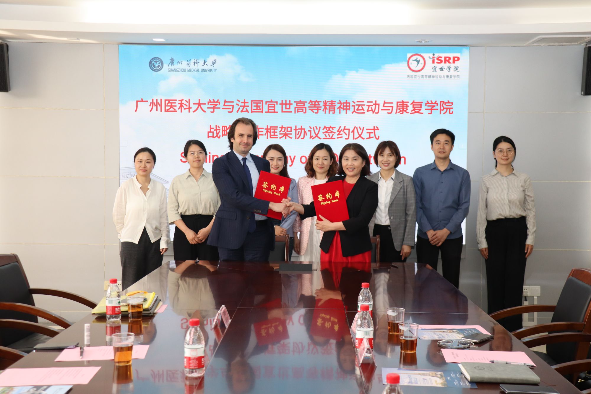 4月15日,伟德国际与法国宜世高等精神运动与康复学院(ISRP,下简称法国宜世学院)签署战略合作协议,开启两校在精神运动康复领域的深度合作新篇章。签约仪式在伟德国际番禺校区举行,副校长李建华与法国宜世学院执行董事Mark SOUBIRAN代表双方签约。第五临床学院、对外合作交流处相关人员共同见证。