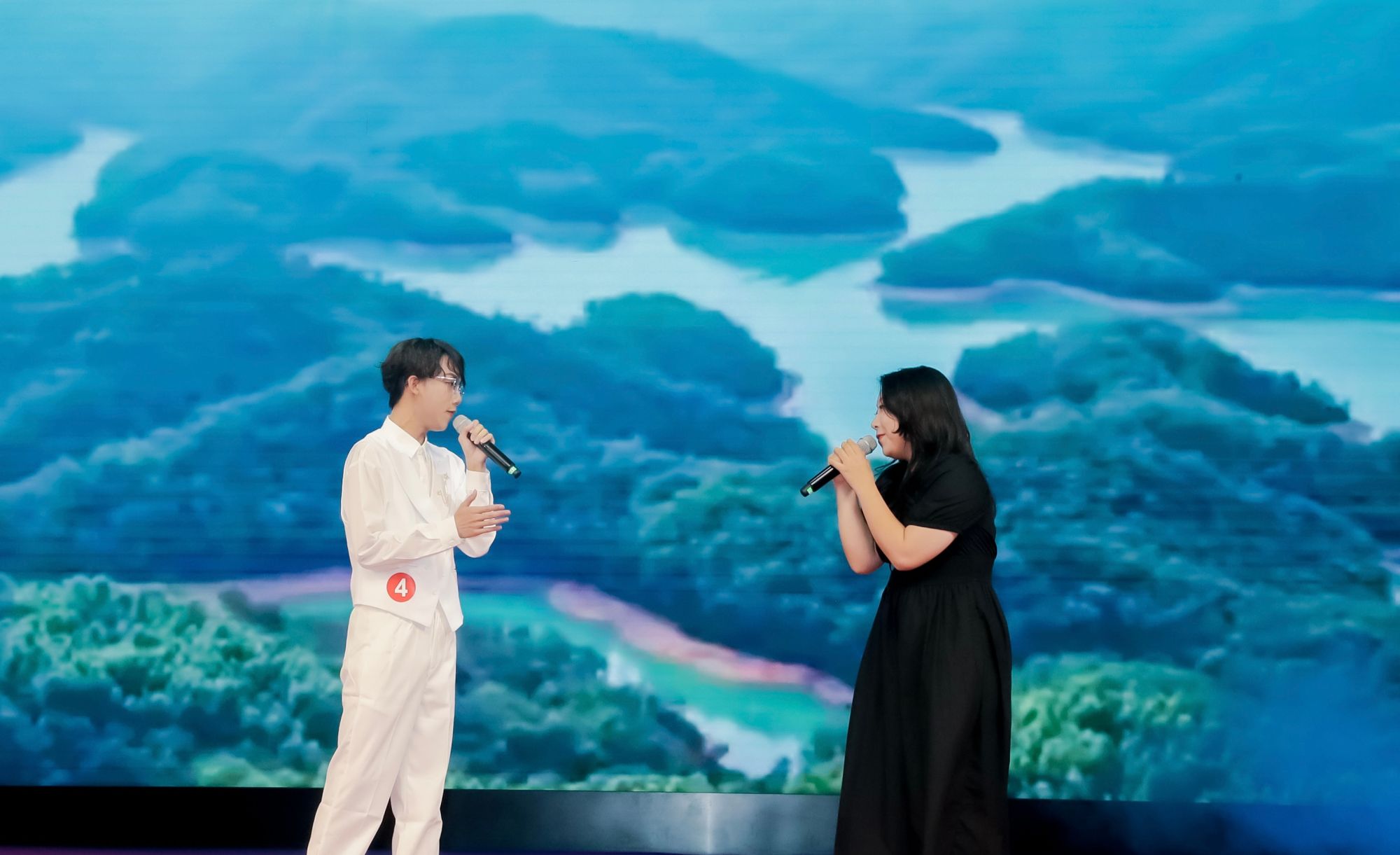 实践教学中心的刘攀老师在歌曲《我和我的祖国》中,表达了对祖国母亲的深情,童声与成熟声线交织,既是血脉的延续,更是精神的传承。