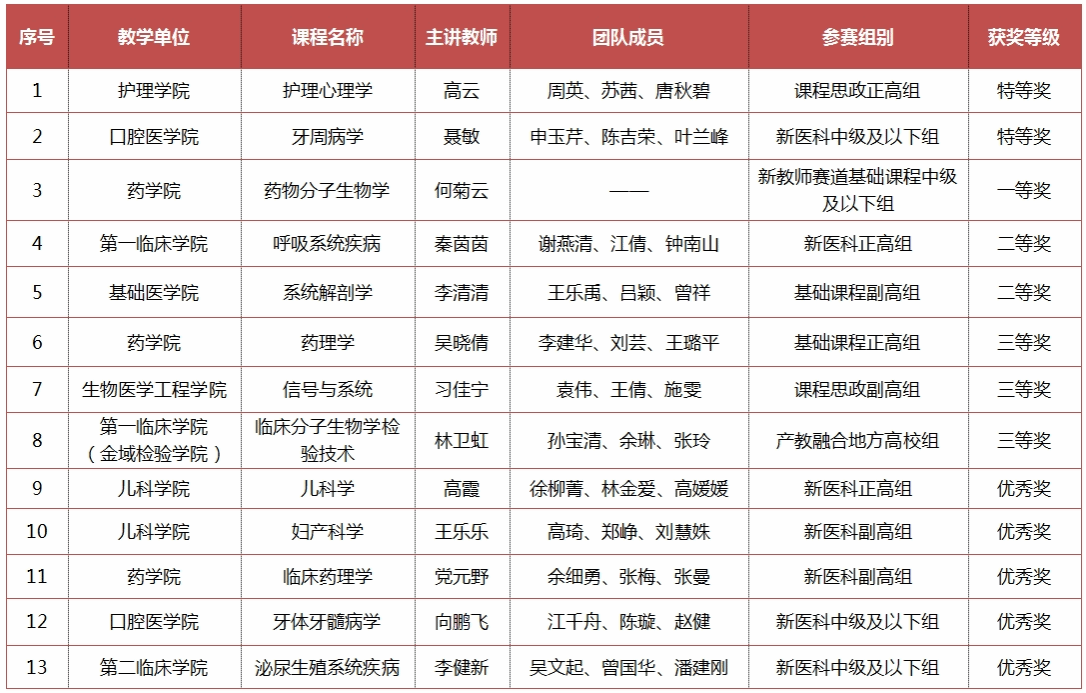 其中,护理学院高云教师团队和口腔医学院聂敏教师团队荣获特等奖,将在相应赛道相应组别代表广东赛区出征全国赛。