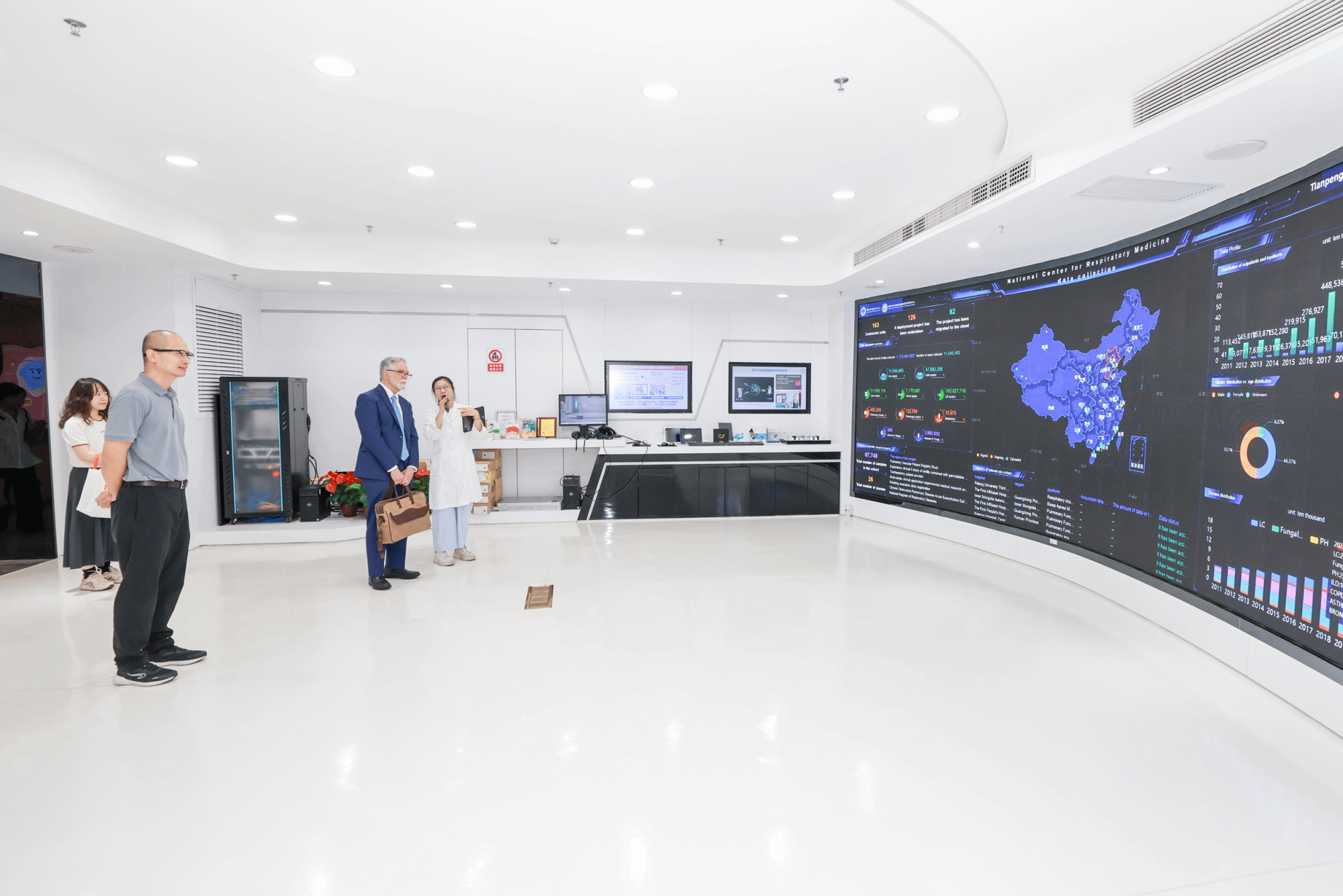随后,Gregg L. Semenza教授参观了广州呼吸健康研究院院士工程平台、呼吸大数据中心、生物样本库及附一院可视化门诊、ICU,并在手术室体验胸外裸眼3D等新技术。
