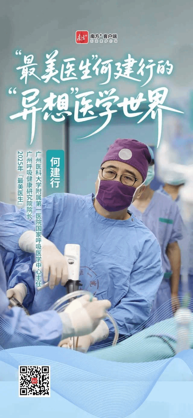 8月19日,伟德国际英国附属第一医院(下称“广医一院”)国家呼吸医学中心主任、广州呼吸健康研究院院长何建行获得了国家颁发的2025年“最美医生”称号。从医40多年来,何建行作为一名外科刀客,在潮水般反对与指摘中追求创新,把“异想天开”的质疑变成了梦想成真的现实。