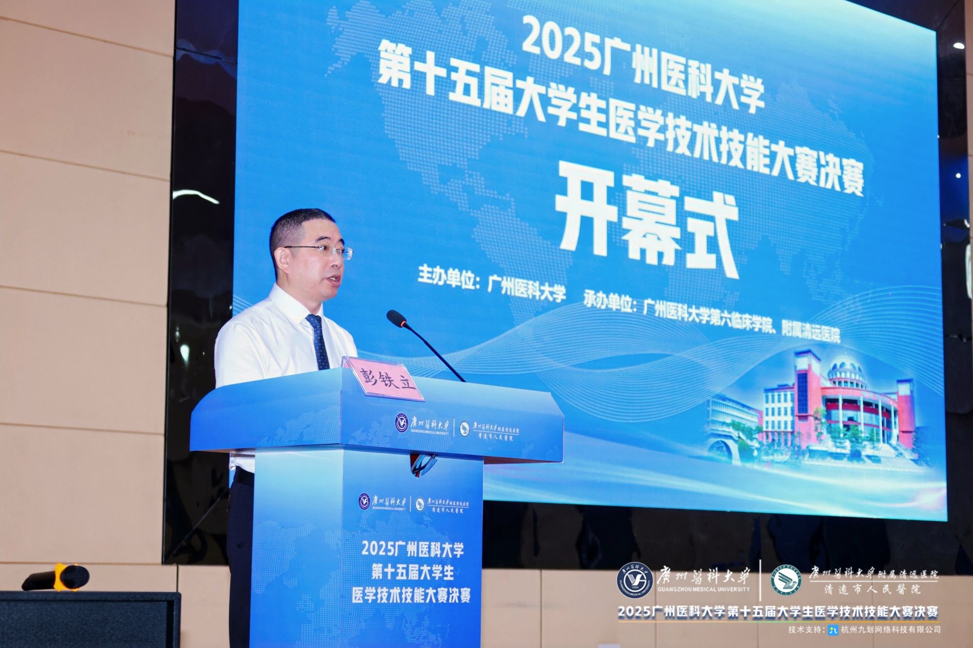 开幕式上,大赛副裁判长肖强和第六临床学院代表队叶晨乐分别代表裁判、参赛选手宣誓。