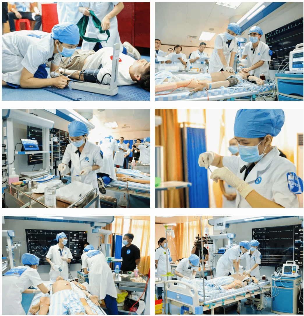 比赛同步开展在线视频和图文直播,并邀请专家进行现场解说点评。赛事过程紧张激烈、扣人心弦:面对河边突发胸痛倒地的患者、发生窒息的新生儿、毒蛇咬伤的患者等紧急情况,参赛选手争分夺秒,果断决策,紧密协作,与时间赛跑。裁判严格评判,关注细节,确保评判严谨公正。工作人员与标准化病人专业配合,保障赛事顺利进行。
