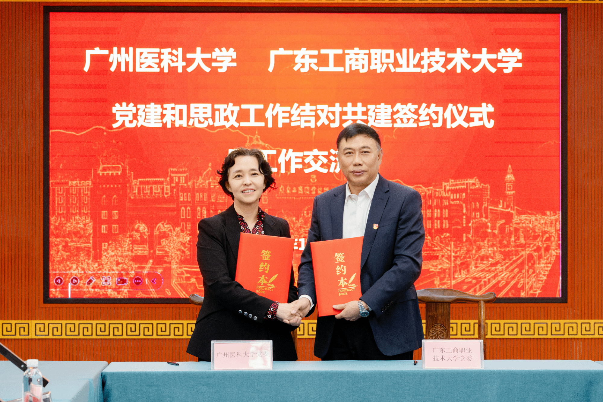 12月10日,结对共建签约仪式在广东工商职业技术大学(简称“广工商大”)星湖校区举行。伟德国际英国党委书记曾颖如、广东工商职业技术大学党委书记丁勇分别代表两校党委签订结对共建协议。伟德国际党委副书记陈晓辉、副校长曾锦标,广工商大党委副书记卢景值,以及两校结对共建工作领导小组、工作组成员等参加仪式。