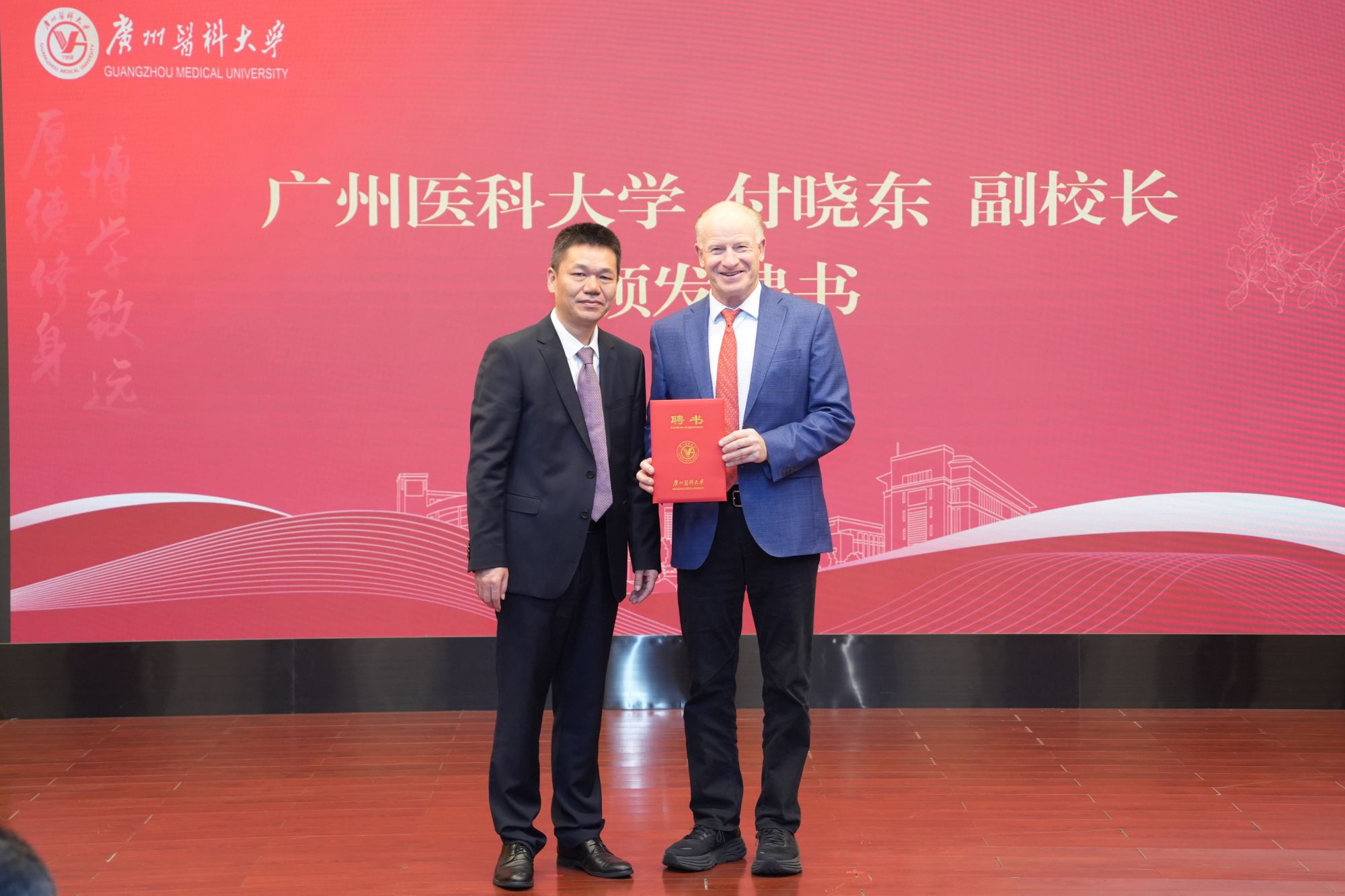 副校长付晓东为约翰·艾德勒教授颁发客座教授聘任证书